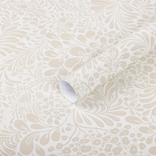 Heroad Peel and Stick Wallpaper Contact Paper Modern Wall Paper Boho Floral Removable Beige Self Adhesive Wallpaper for Bedroom Living Room Walls Bathroom Waterproof Vinyl Roll 17.3”x78.7”